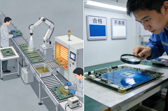 3、涂覆层要透明,并且均匀覆盖PCB板和元件,色泽和稠度均匀一致。